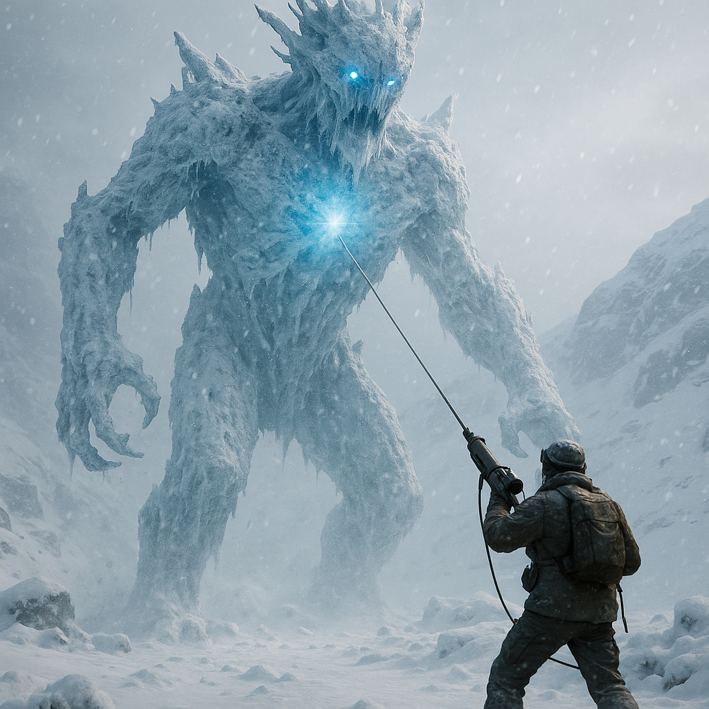 The Frostbound Titan was what they had called it since they first glimpsed it emerging from the ice. A monster towering nearly fifty feet tall, crafted of snow, frost, and living glacier. Its jagged form sparkled cruelly in the harsh light, resembling twisted icicles brought to life. The glowing blue light that shimmered inside its chest and radiated from its hollow eye sockets felt ancient, almost divine. And yet, it acted purely on instinct—a destructive, territorial force of nature.